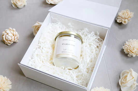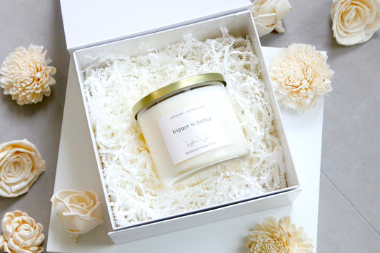 All candles come with a coordinating metal lid and will arrive individually boxed for gifting.