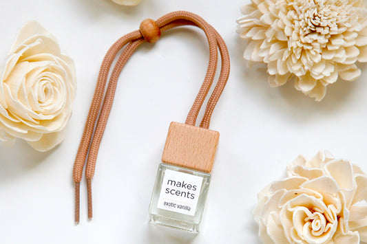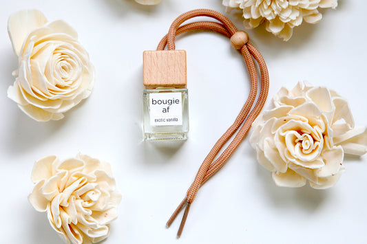 The modern way to add high end fragrance (and a smile) to a small space. Bougie diffusers can be hung in closets, on door knobs of bathrooms, dorm rooms, bedrooms, offices or from the rear view mirror of your car. Made of glass and real wood, filled with our exotic vanilla or pure luxury scents, they will last for up to 2 months. Fragrances are made with non-toxic, phthalate-free, vegan and cruelty-free ingredients.
